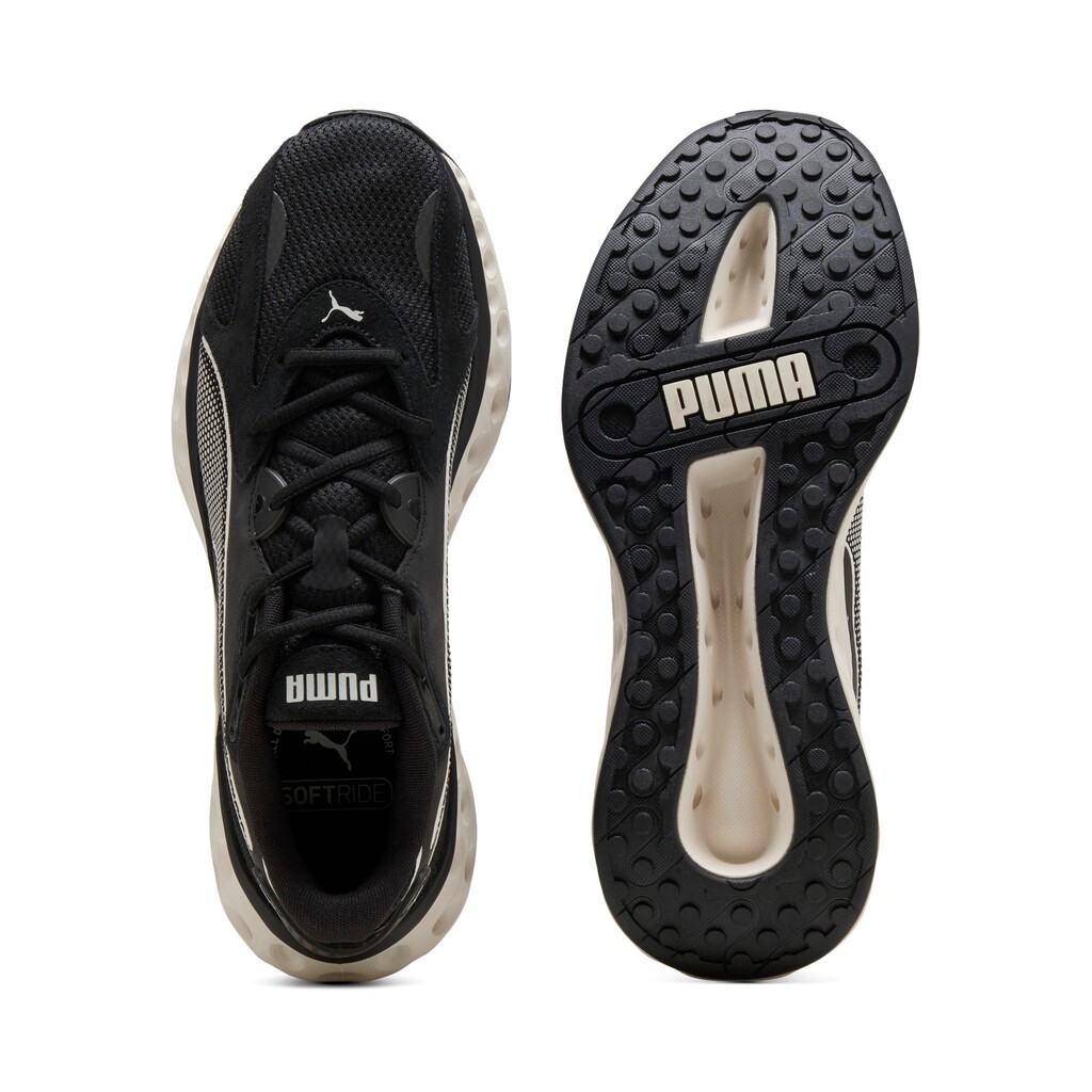 Ζήσε την κάθε διαδρομή με μοναδική άνεση και στυλ με τα Puma Softride Frequence ανδρικά αθλητικά παπούτσια για τρέξιμο σε μαύρο, εκρού και λευκό χρώμα.